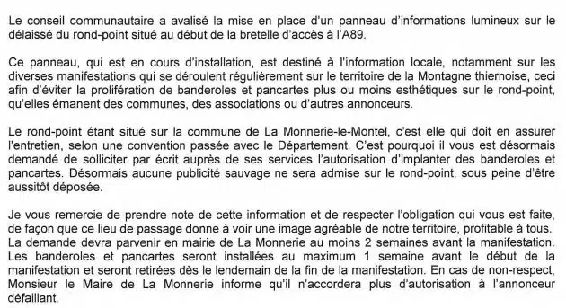 Publicité sur le rond-point de la RD 2089