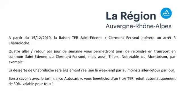 Accueil » Actualités » DESSERTE TER à Chabreloche